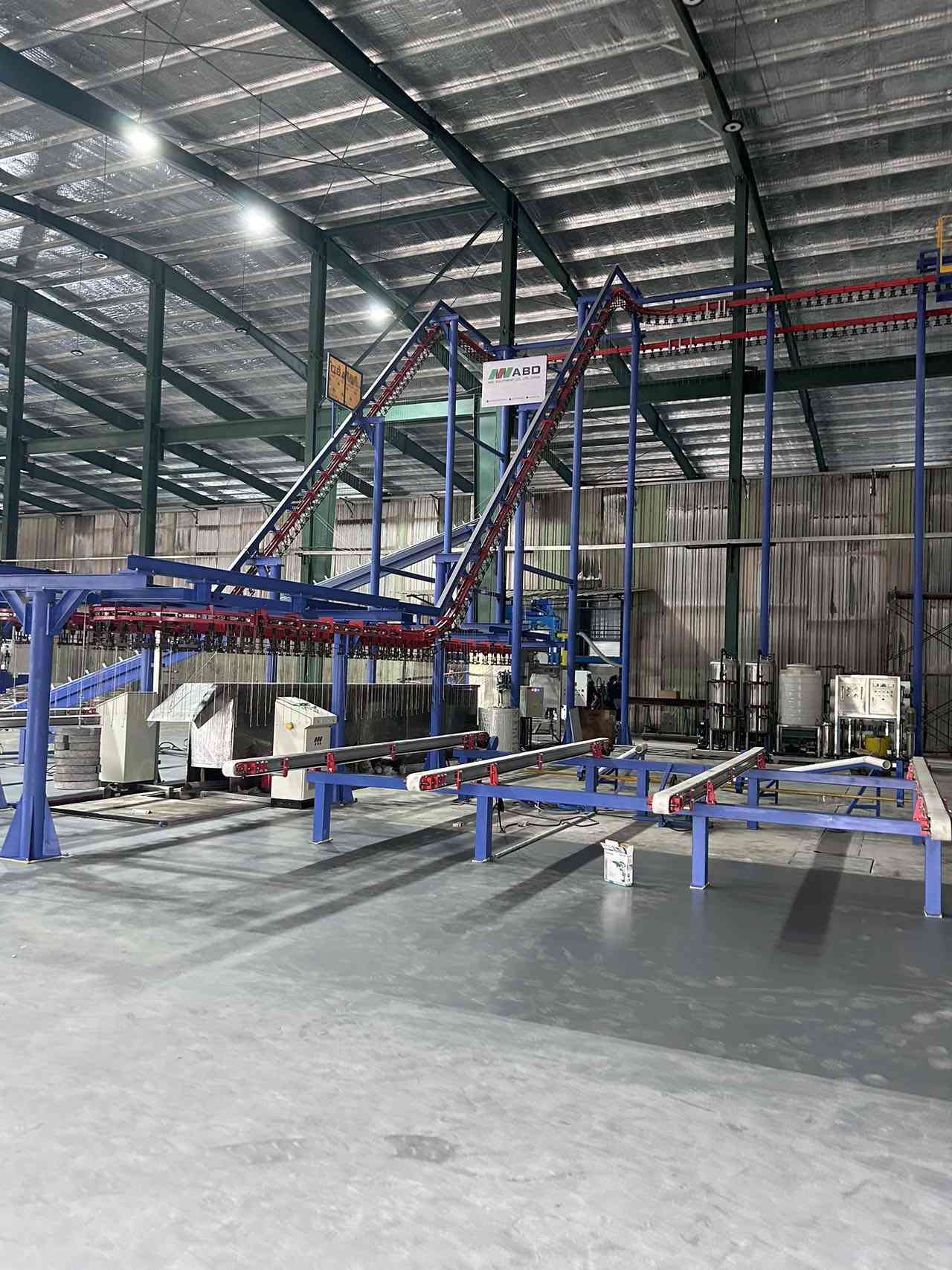 Κύριο συστατικό:Σύστημα κρεμαστού μεταφορέα επίστρωσης σκόνης, σύστημα φόρτωσης και εκφόρτωσης, προεπεξεργασία, φούρνος ξήρανσης, θάλαμος επίστρωσης σκόνης και σύστημα ανακύκλωσης, φούρνος σκλήρυνσης, ηλεκτρικό σύστημα ελέγχου, πιστόλια επίστρωσης σκόνης, κέντρο παροχής σκόνης, αεροσυμπιεστής, σύστημα μηχανής νερού DI και ούτω καθεξής.