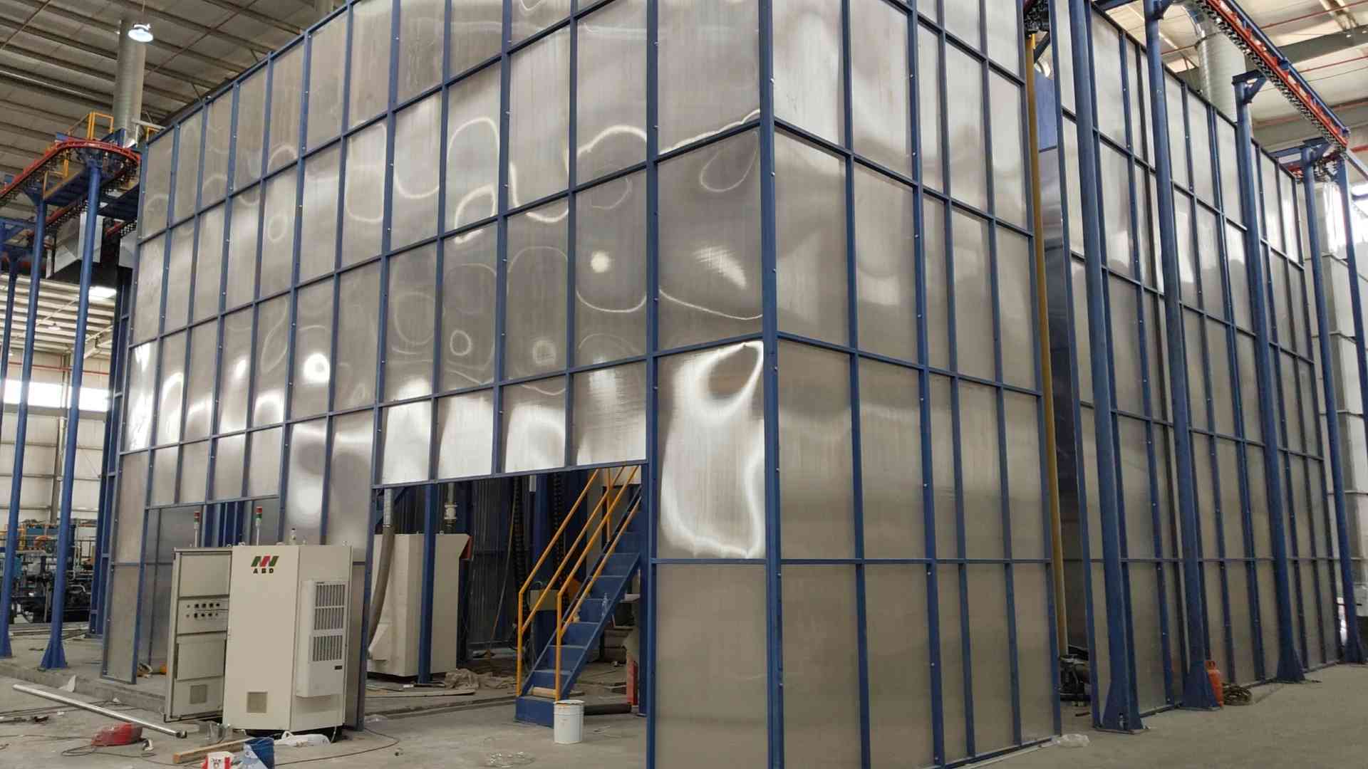 2)Technical Description:Loading ,pre-treatment ,drying , powder coating, Curing ,unloading .